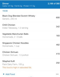 I am sure you see the picture! I recently took a calorie count of one such binge dinner! Take a look:
