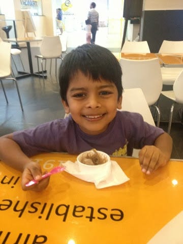 Took Atri out this afternoon for burgers and ice cream to our neighbourhood mall.
