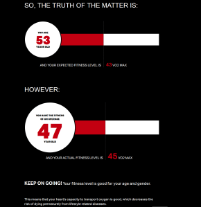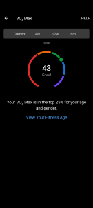 I was shocked since I was used to being in the VO2 Max band of 48-50 and was expecting my score to be somewhere in the vicinity of 40-42.